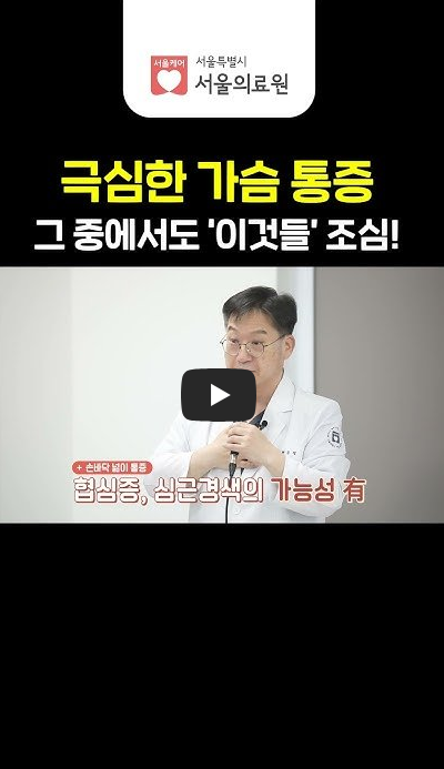 - 가슴 통증과 함께 호흡 곤란, 식은땀, 구토, 어지럼증이 동반되는 경우