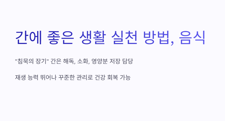 - 흡연 금지: 담배는 간 세포를 직접적으로 손상시키는 주범입니다. 금연은 필수!