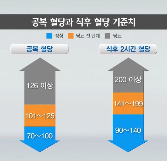 - 당뇨병: 126mg/dL 이상 (두 번 이상 측정 시)