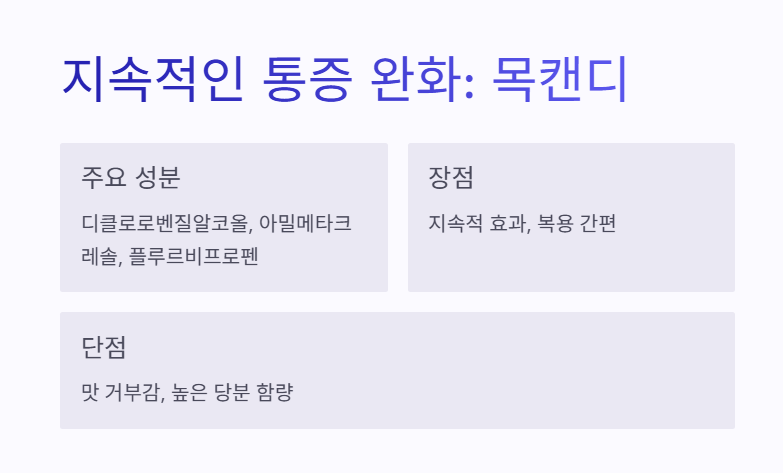 2. 지속적인 통증 완화: 트로키 제제 (목캔디)