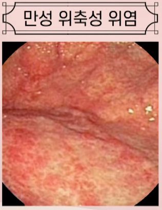 보통 위축성 위염 환자의 위내시경 사진을 보면, 정상적인 선홍빛 위 점막과 달리 창백하고 혈관이 비쳐 보이는 특징을 보여요. 이는 위를 보호하고 소화를 돕는 점막층이 그만큼 얇아졌다는 증거입니다.